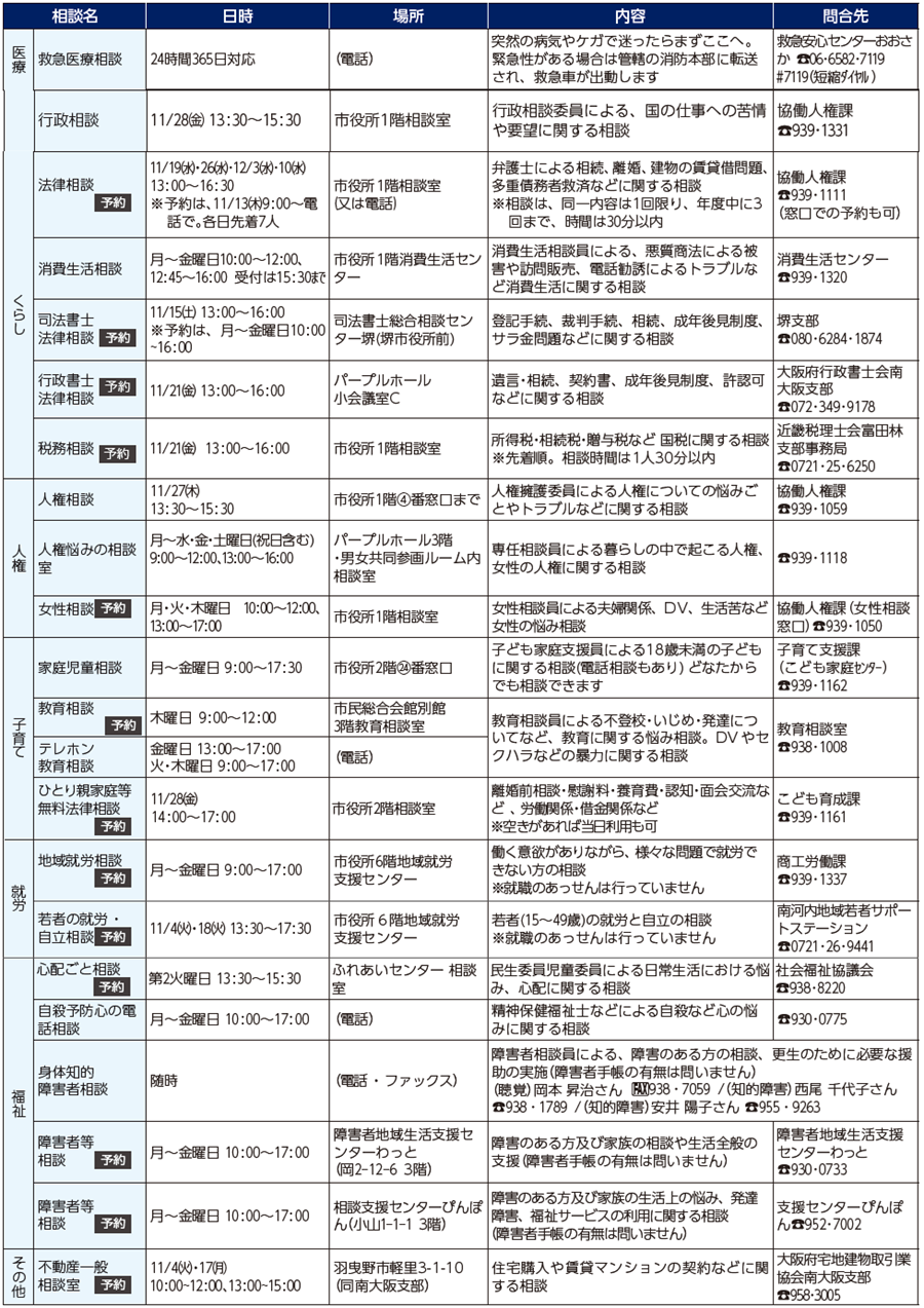 くらし 各種相談 39/47 前の記事 次の記事 発行日 : 2025年11月01日 自治体名 : 大阪府藤井寺市 広報紙名 : 広報ふじいでら 令和7年11月号 ※相談はすべて無料。【予約】マークがあるものは要予約。曜日指定の相談の場合、祝日は除く。 Tweet シェアする ふじいでら歴史紀行 226 消費生活 知っ得情報 No.181