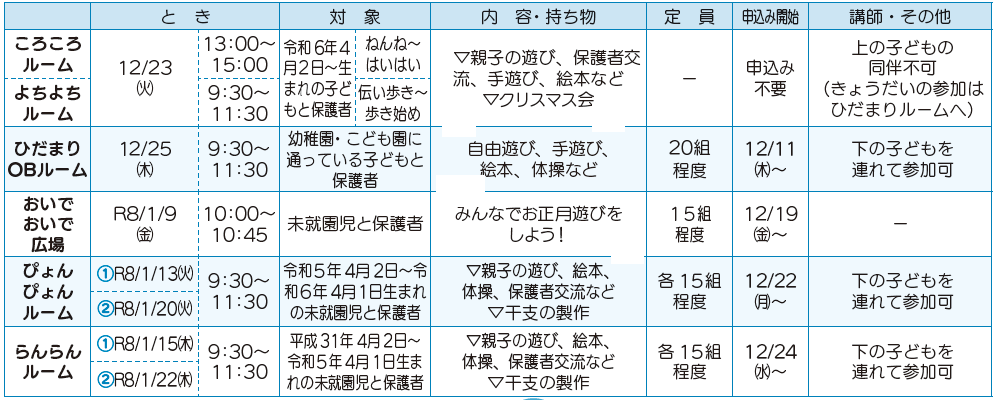 申込み:12月23日(火)午前9時から電話でひだまりへ