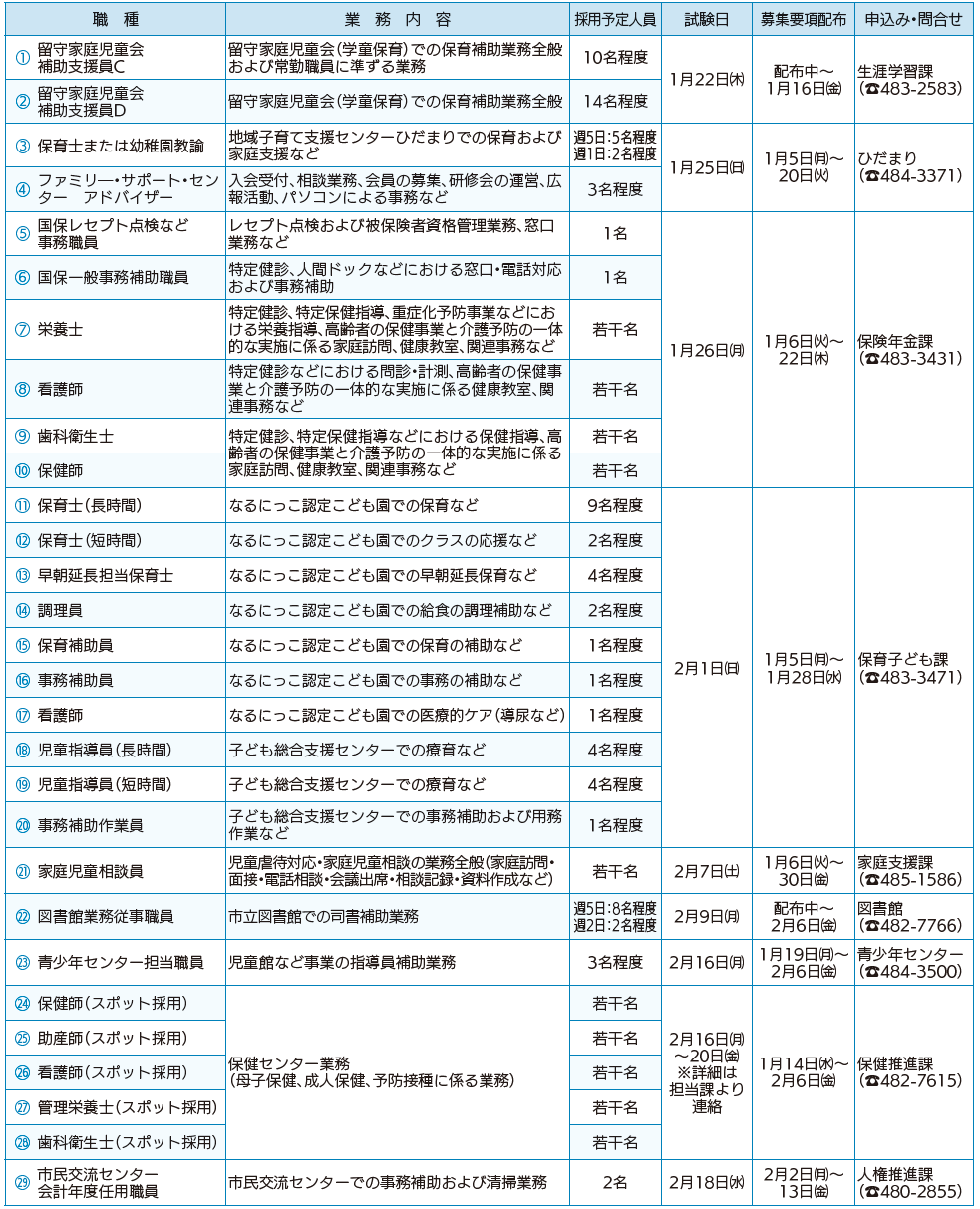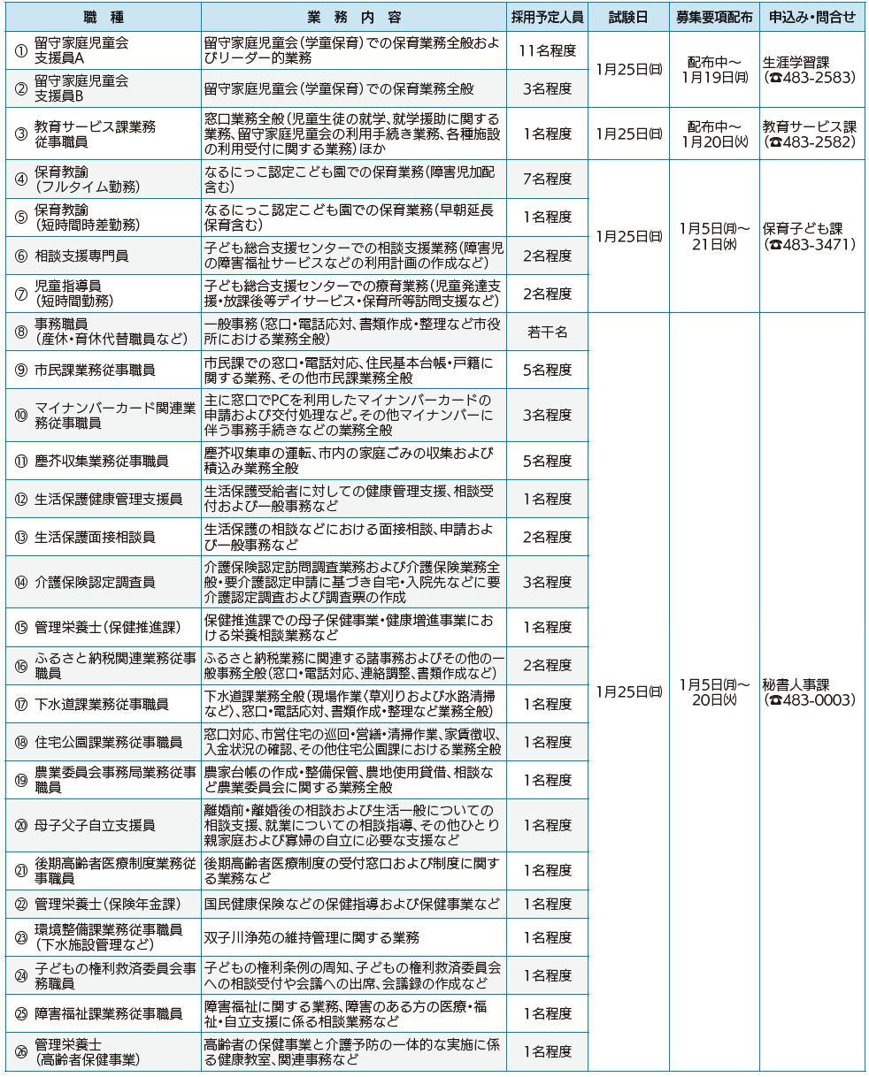 職種・業務内容・採用予定人員・試験日:表をご参照ください