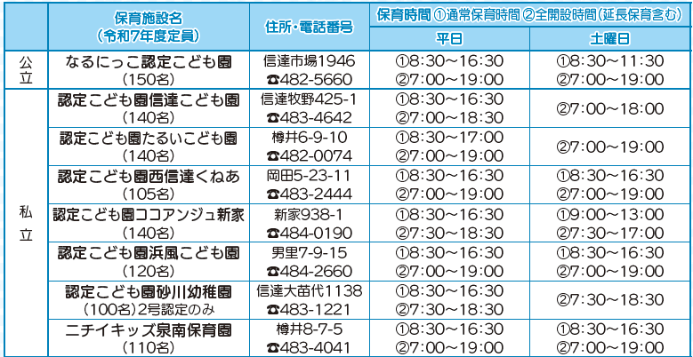 ・認定こども園の定員は、1号認定(教育標準時間)の定員を除きます。1号認定への入園を希望される方は、認定こども園または保育子ども課へお問合せください