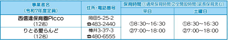 関連サイト:市ウェブサイト→せんなん子育てネット→情報を見る→あずける・通う