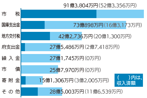 一般会計予算現額330億8,948万円のうち、歳入予算の収入済額は106億3,791万円です。また歳出予算の支出済額は90億2,252万円です。(令和7年8月末現在)