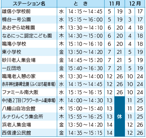 *11/27(木)~12/1(月)は、システム更新による臨時休館のため巡回はお休みです