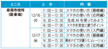 申込み:各講座前日までに電話で氏名、連絡先(携帯電話番号)、参加希望日時、講座名をソフトバンク(株)へ