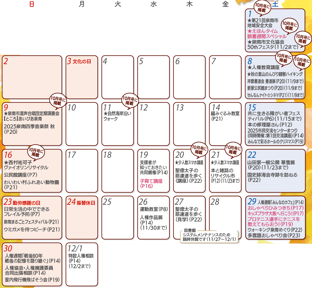 - 広報紙名 : 広報せんなん 令和7年11月号