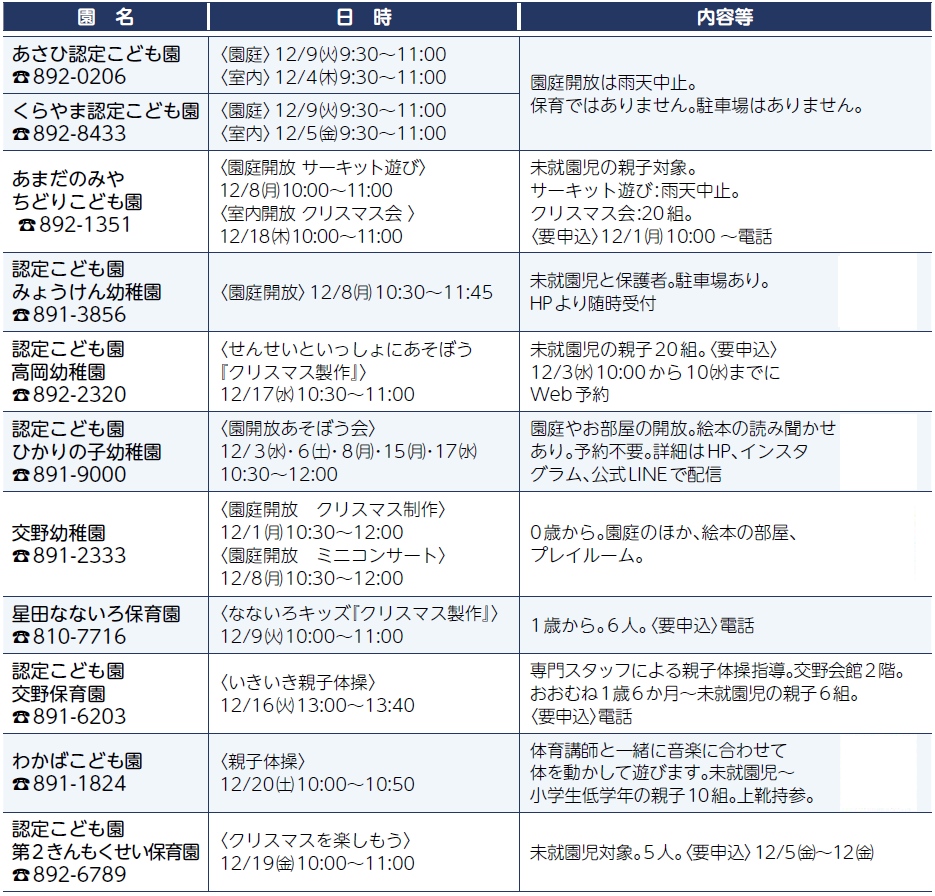 〇(予)子育て講座ベリーズかあさんの「クリスマス音楽会」