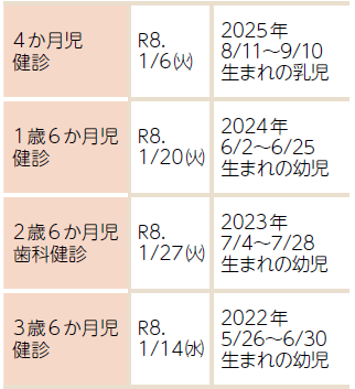 持ち物:「離乳食の進め方」の冊子、筆記用具