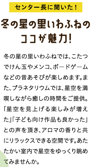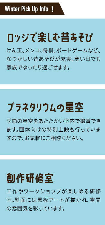 くらし (特集)冬の交野の魅力再発見(2) 2/34 前の記事 次の記事 発行日 : 2026年02月01日 自治体名 : 大阪府交野市 広報紙名 : 広報かたの 2026年2月号 【#2】冬の交野の魅力再発見 ◇星の里いわふね 交野市立いわふね自然の森スポーツ・文化センター 【#3】冬の交野の魅力再発見 ◇府民の森ほしだ園地 Tweet シェアする (特集)冬の交野の魅力再発見(1) R8年度スポーツ教室