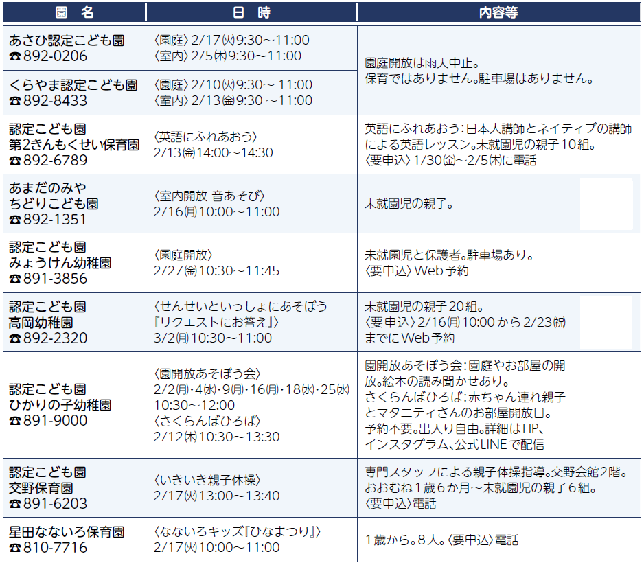 ■2月の子育て施設