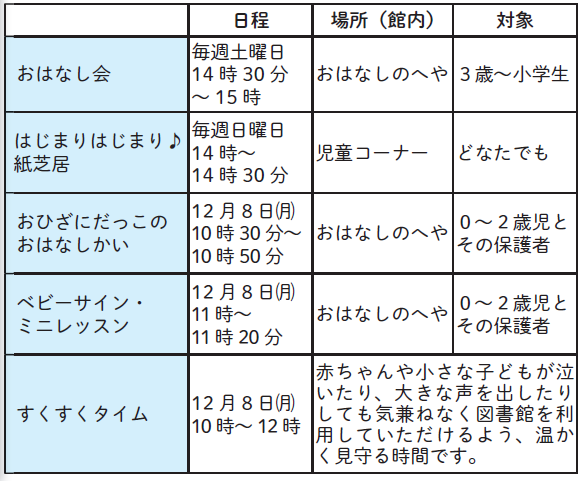 12月休館日:毎週水曜日、29日(月)・30日(火)