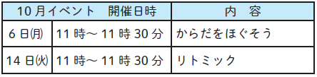 ※毎月第2週目は絵本タイム、第3週目は工作タイム(10時30分~11時頃)があります。
