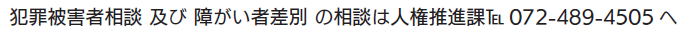 10月は、「大阪府部落差別事象に係る調査等の規制等に関する条例」啓発推進月間です。同和地区に住んでいることなどを理由とした結婚差別や就職差別などの差別事象を引き起こすおそれのある個人及び土地に関する調査や報告等を規制することによって、部落差別事象の発生を防止し、基本的人権を擁護することを目的としています。部落差別につながる恐れのある調査の依頼をやめ、差別のない人権の尊重された社会を築いていきましょう。