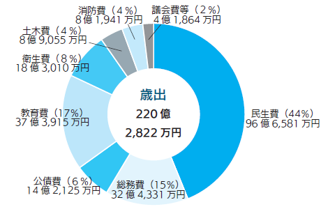 令和6年度は、歳入222億9,960万円、歳出220億2,822万円で、2億7,138万円の黒字決算となりました。