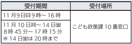 こども政策課で配布する申込書や必要書類を下記の受付期間に提出してください。下記の受付期間後は、欠員補充扱いになります。