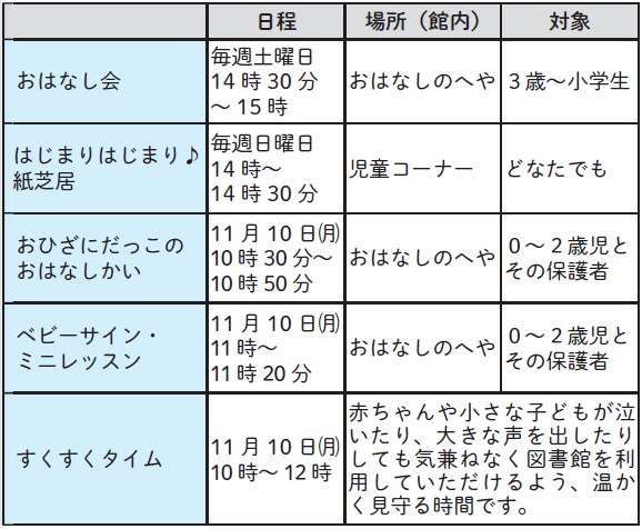 11月休館日:毎週水曜日、4日(火)・25日(火)