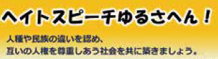 人種又は民族を理由とする不当な差別的言動、いわゆるヘイトスピーチは、人としての尊厳を傷つけ、差別意識を生むことにつながる許されない行為です。