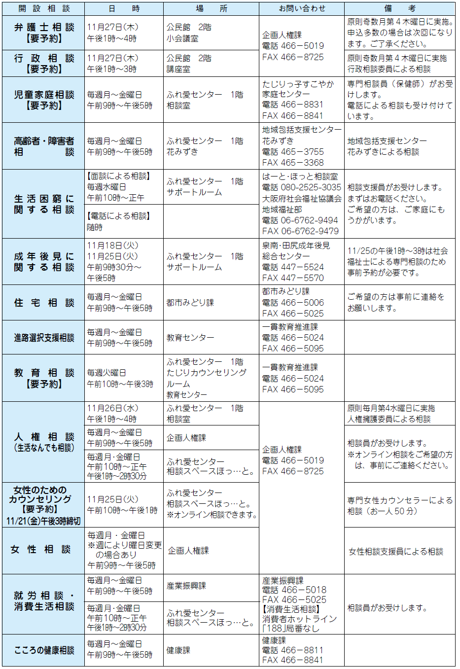 くらし 無料相談 37/40 前の記事 次の記事 記事を読み上げる 発行日 : 2025年11月01日 自治体名 : 大阪府田尻町 広報紙名 : 広報たじり 2025年11月号 各種相談については内容をご確認の上、実施機関までお問い合わせください。 いずれも祝日・年末年始を除く Tweet シェアする ワイドアングル 田尻町令和7年11月行事カレンダー
