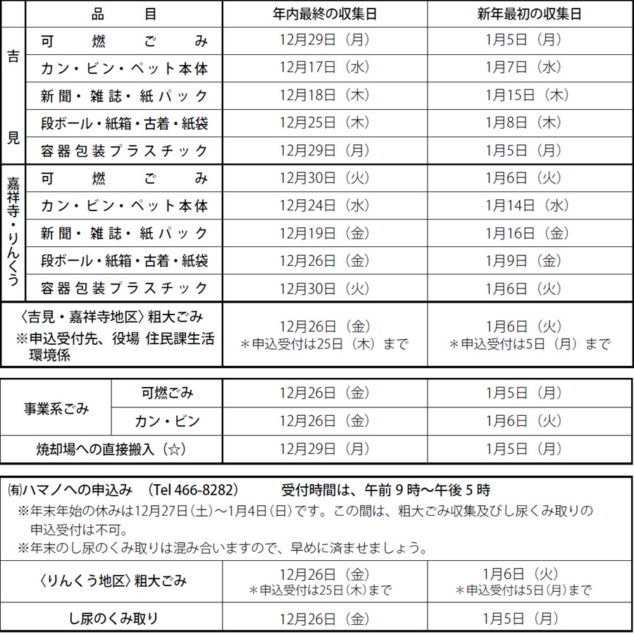 ※粗大ごみの収集申込みは、年末は混み合います。早めの申込みをお願いします。