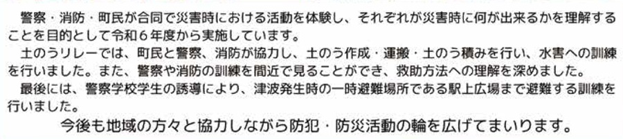 イベント 令和7年度 防犯防災イベントを開催しました! 40/41 前の記事 次の記事 記事を読み上げる 発行日 : 2025年12月01日 自治体名 : 大阪府田尻町 広報紙名 : 広報たじり 2025年12月号 ■in 大阪府警察学校 ※本紙二次元コードよりご覧ください。 問合せ:安心まちづくり推進局 【電話】466-5009【FAX】466-5025 Tweet シェアする 田尻町 令和7年12月 行事カレンダー その他のお知らせ(広報たじり 令和7年12月号)