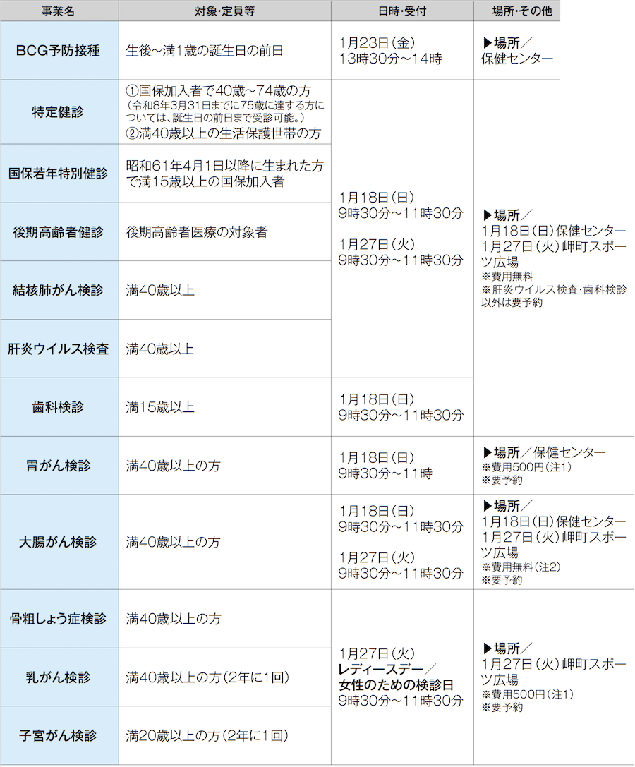 ※毎月10日までの健康スケジュールは前月号に掲載しています。詳しくは「R7年度健康づくり日程表」でお知らせしていますので、1年間大切に保管して健康づくりにお役立てください。