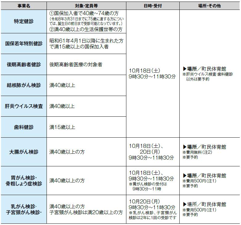 ※毎月10日までの健康スケジュールは前月号に掲載しています。詳しくは「R7年度健康づくり日程表」でお知らせしていますので、1年間大切に保管して健康づくりにお役立てください。