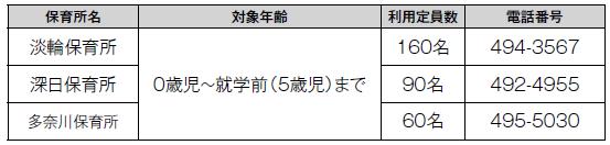 ・多奈川保育所入所児童については、土曜日の保育は深日保育所にて合同保育となります。