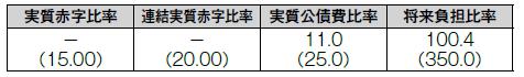 ・実質赤字比率…一般会計等の赤字の程度を指標化し、財政運営の深刻度を示すもの