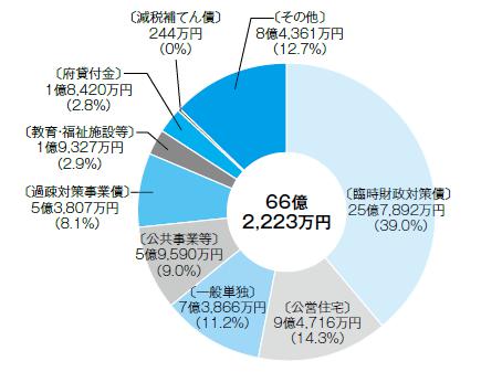 令和7年9月末における町債の現在高は、66億2,223万円となっています。