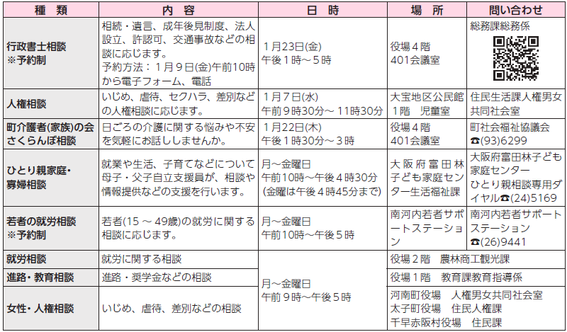 くらし 1月の相談(祝日を除く) 16/25 前の記事 次の記事 発行日 : 2026年01月01日 自治体名 : 大阪府河南町 広報紙名 : 広報かなん 令和8年1月号 ※プライバシーは守ります。 Tweet シェアする 図書館だより 南河内地域2町1村未来協議会 住民アンケート結果報告 part2