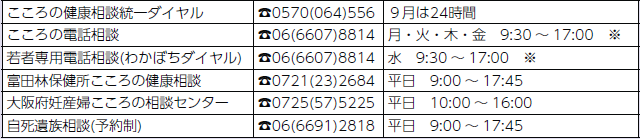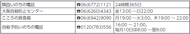 悩みがあるとき、生きるのがつらいときは、ひとりで抱え込まず、専門機関に相談してください。