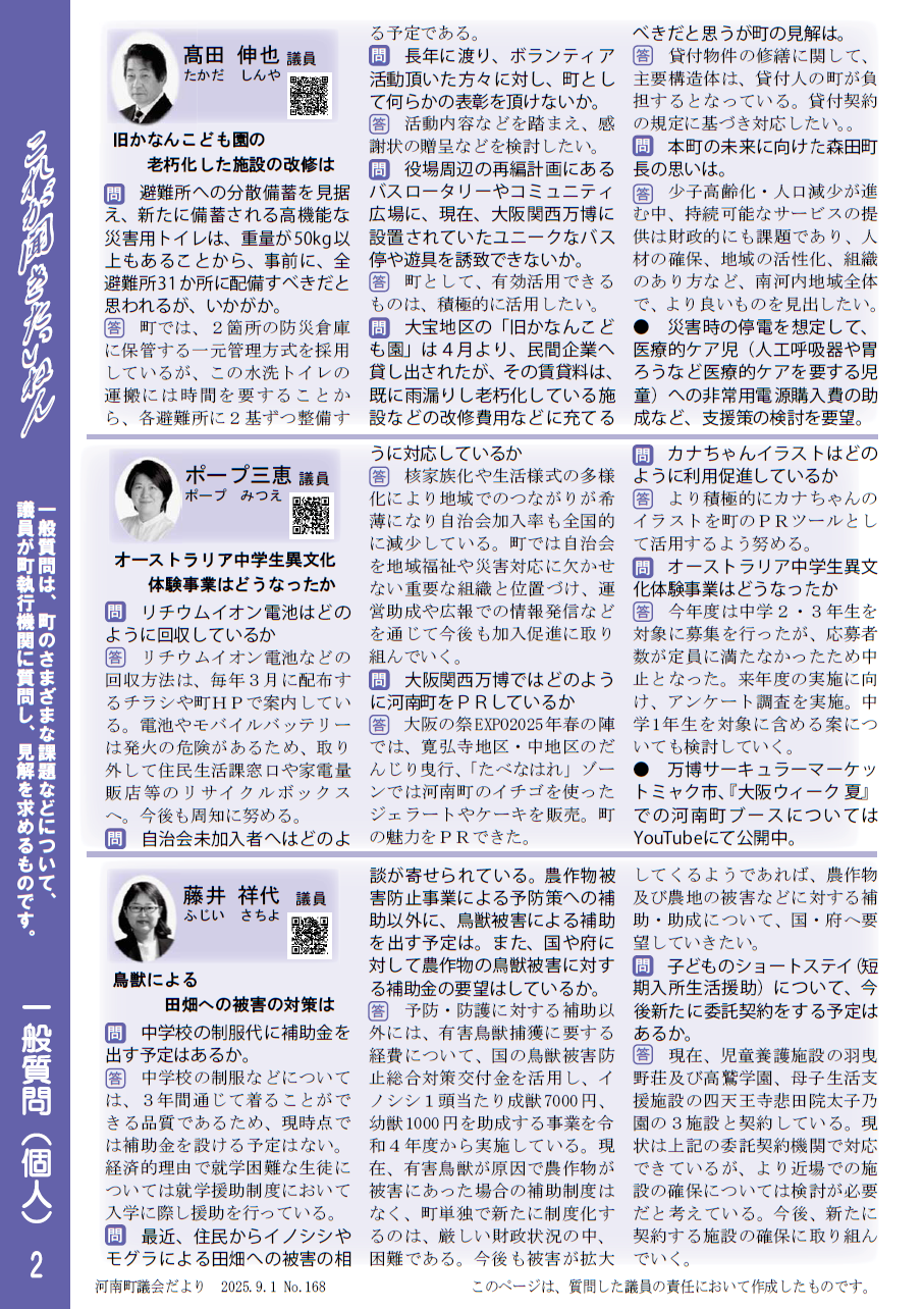 くらし かなん議会だより(1) 28/33 前の記事 次の記事 発行日 : 2025年09月01日 自治体名 : 大阪府河南町 広報紙名 : 広報かなん 令和7年9月号 Tweet シェアする 2町1村未来協議会 かなん議会だより(2)
