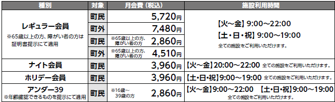※プール・マシンジムの利用は、施設利用時間の30分前までとなっております。