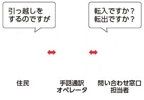 ▽4 手話通訳オペレータに接続されたら、問い合わせ内容を伝える。内容に応じて、各担当課へと電話がつながる