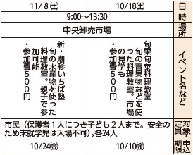 申し込み:いずれもウェブサイトで必要事項を中央卸売市場へ