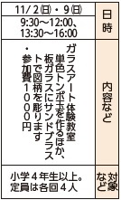 申し込み:10月10日(金)から各開催日の前日までに、電話で必要事項を網干環境楽習センターへ
