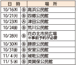今月は乳児対象のみを掲載しています。最新または詳しい情報はウェブサイトで確認を。