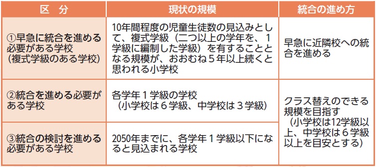 学校とは学力だけでなく、安心できる環境で、豊かな人間性や社会性、協調性をバランスよく身に付け、たくましく生きるための力を育む場だと考えています。この「生きる力」を身に付けるためには、さまざまな意見や考え方を持った仲間との交流を通して、価値観の違う人とも共生できる協調性や社会性を身に付けていくことが重要です。そのためには一定規模の児童生徒集団を確保し、少子化に対応した活力ある学校づくりを行うことが必要です。