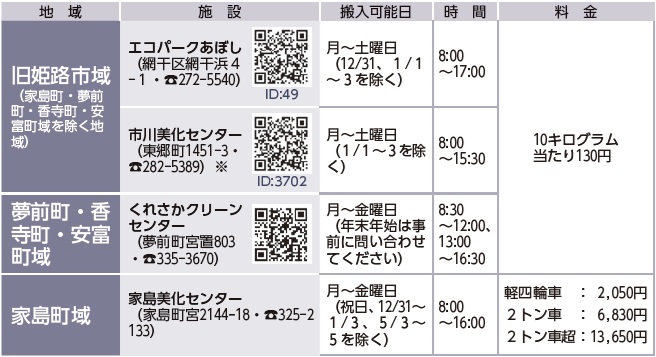 ※市川美化センターは、可燃ごみのみの取り扱いです。不燃ごみ等はエコパークあぼしへ