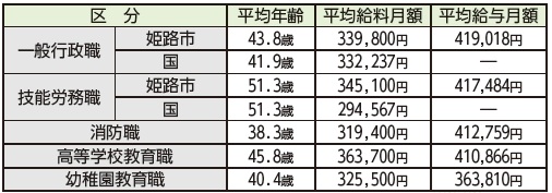 ▽職員の平均年齢と平均給料月額など(7年4月1日現在)