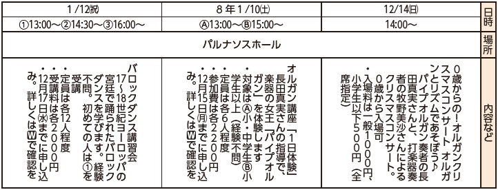 問合せ:パルナソスホール