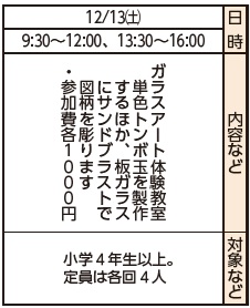 申し込み:12月11日(木)から開催日の前日までに、電話で必要事項を網干環境楽習センターへ