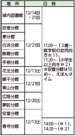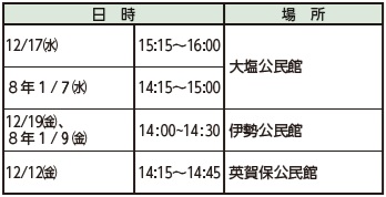 申し込み:12月15日(月)午前10時~25日(木)に、ウェブサイトで城内図書館へ