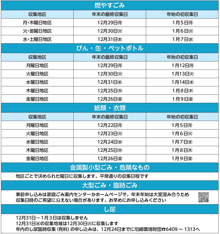 問合せ:家庭ごみ案内センター ※12月29日〜1月3日は休業