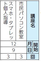 時間や料金などは講座により異なります。いずれも
