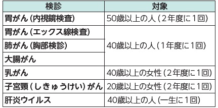 定期的な検診で、がんの早期発見を。検診により受診できる場所や自己負担額が異なります。