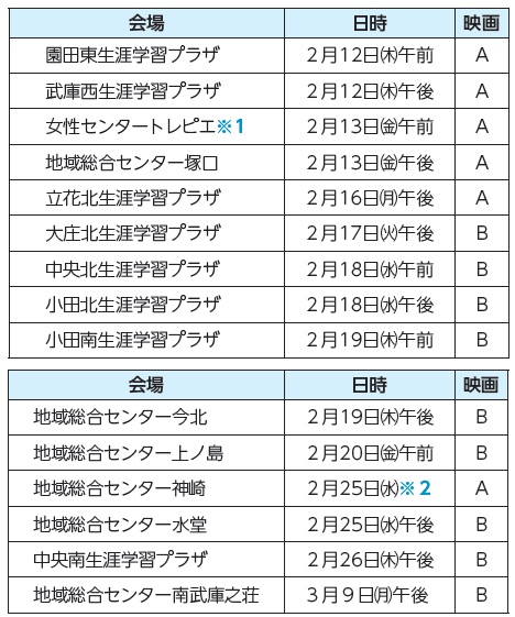 上映映画:A「見上げれば」、B「君の景色を知ったとき」のいずれか。上映後は講師による講話を。