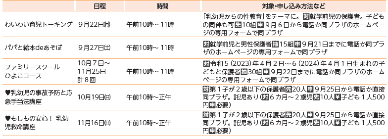 子育て すこやかプラザで 42/54 前の記事 次の記事 発行日 : 2025年09月01日 自治体名 : 兵庫県尼崎市 広報紙名 : 市報あまがさき 令和7年(2025年)9月号 休館日:水曜日 問合せ:同プラザ 【電話】6418-3463 Tweet シェアする 南北保健福祉センター・保健所から 令和8(2026)年度入園 幼稚園児を募集します