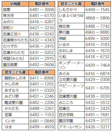 ※印のある幼稚園とすべての認定こども園は、9月1日現在、子ども・子育て支援新制度に移行しています