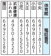 教室名:おやこ体操や足腰元気体操(認知症予防)、小学生のチャレンジスポーツなど。