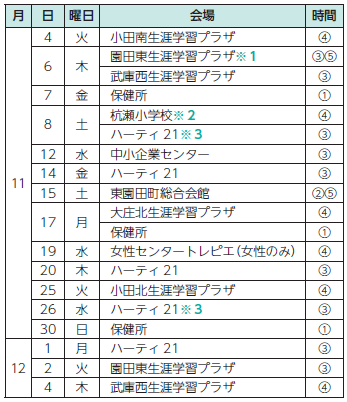健診の日程は表の通り。